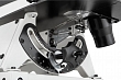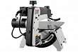 Станок оборудован параллелограммным механизмом привода качающейся части, имеющим ряд особенностей. Во-первых, верхняя часть рамы поднимается, что удобно при наладке или установке заготовки. В верхнем положении она фиксируется и не требует удерживания. Нижнее положение можно корректировать вращением рукоятки, подстраивая под длину пилки и толщину детали. Во-вторых, предусмотрен режим работы с продольной подкачкой полотна (так называемый маятниковый ход), который обеспечивает более «агрессивное» и производительное пиление. В зависимости от требований к скорости, точности и чистоте распила настраивают амплитуду продольных движений в диапазоне от нуля и до максимальной величины. Процедура выполняется поворотом моторного модуля вокруг оси.