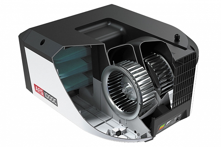 Особенности:Новая модель фильтрационной установки для очистки воздуха в производственных помещениях от пыли, аэрозолей и прочих загрязнений. Это самая мощная модификация в ассортименте JET, имеющая максимальную производительность, причем она заметно увеличилась, если сравнивать с предшествующей моделью, имевшей то же название AFS-1000B. Не претерпел изменений и принцип действия: воздух проходит две ступени очистки, причем сами фильтры взаимозаменяемы с предыдущей версией устройства.