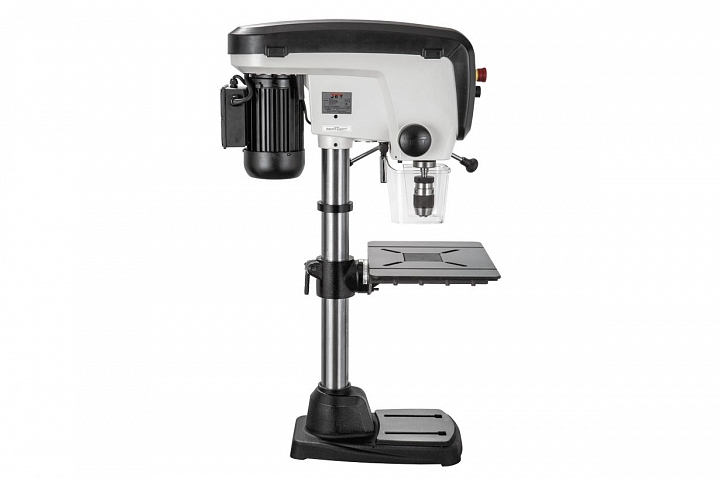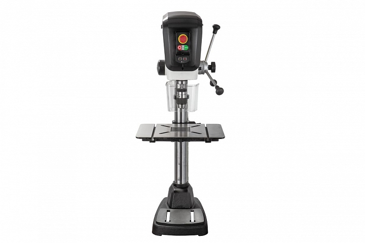Jet JDP-15В - настольный вариант профессионального сверлильного станка для применения в столярной мастерской. Его рабочие параметры оптимизированы для решения задач, возникающих при деревообработке: увеличен ход пиноли шпинделя, повышена максимальная скорость вращения, рабочий стол увеличенной площади имеет прорези для крепления заготовки с помощью струбцин и большое отверстие в центре для сменной («жертвенной») вставки. Важная особенность – наличие четырех регулировочных винтов под основанием, что позволяет использовать вставки, сделанные из материала разной толщины. В остальном конструкция аналогична традиционным моделям, ориентированным на сверление металла, и не уступит им с точки зрения жесткости, массивности и запаса прочности.