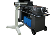 Конструкция выполнена из серого чугуна, имеет регулировку по высоте в диапазоне 600-950 мм. Устойчивое 3-х опорное основание, прочная конструкция обеспечивает оснастке грузоподъемность 200 кг. Масса рольганги составляет 15 кг.