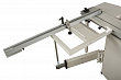 Циркулярная пила Jet JTS-600XL – уникальный по сочетанию характеристик и стоимости станок. Уже в базовый комплект поставки входит подвижный стол (каретка) и расширение к нему. Расширитель укомплектован регулируемой телескопической опорой и торцевым упором заготовки. Торцевой упор выполнен поворотным, что позволяет делать распилы под точно установленным углом. Для фиксации заготовки можно использовать регулируемый концевой ограничитель; в случае ненадобности он откидывается.